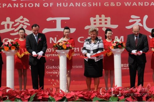 2011年9月21日, 湖北黃石。 黃石捷德萬達(dá)金卡有限公司在湖北黃石的工廠舉辦竣工典禮,慶祝公司第四期廠房擴建項目順利竣工并投入使用。