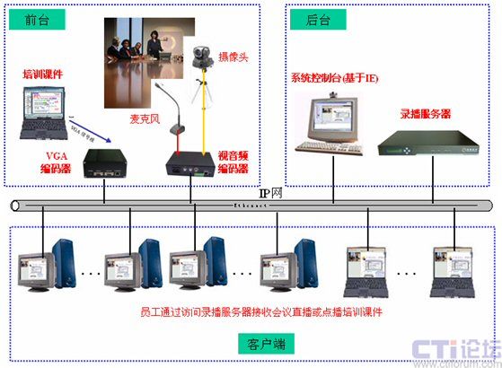 公司經(jīng)常會組織各種培訓,以往都是將員工召集到一起進行集中面對面的培訓,如果參與培訓人員太多,往往就要分場次的培訓,這樣培訓的效率太低,因此希望構(gòu)建一套基于網(wǎng)絡的培訓平臺,增強培訓效率。同時,通過培訓系統(tǒng)也可以對企業(yè)的日常會議進行錄播,方便會議精神更好的傳達到每個員工的心中。