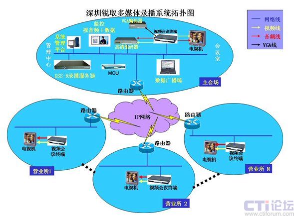 基于本企業(yè)目前信息化硬件條件的環(huán)境,銳取多媒體錄播系統(tǒng)與Polcom視頻會(huì)議系統(tǒng)相結(jié)合的配合解決方案被采用。