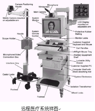 遠(yuǎn)程醫(yī)療系統(tǒng)除需要高清晰度的圖像質(zhì)量外,需要提供專(zhuān)用的系統(tǒng)調(diào)看、傳送醫(yī)學(xué)影像圖片,如CT、核磁共振照片等。必要時(shí)還需要聯(lián)接醫(yī)用光學(xué)系統(tǒng),如內(nèi)窺鏡等,將醫(yī)學(xué)圖像傳送到會(huì)議中。這要求視頻會(huì)議系統(tǒng)有豐富的接口配置和良好的擴(kuò)展能力。一些視頻會(huì)議廠(chǎng)家,如TANDBERG,已可以提供專(zhuān)用的遠(yuǎn)程醫(yī)療系統(tǒng)。