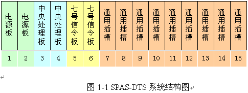 SPAS-2000平臺由SPAS-DTS框和SPAS-SAS框組成。SPAS-DTS框負責各種信令的接入,是一種可編程的交換機。SPAS-SAS是用戶接入框,主要負責ASL用戶、DDN、環(huán)路中繼等用戶接口的接入。