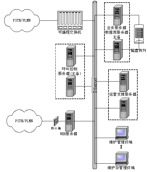 呼叫、資源控制服務(wù)器(HOST)是系統(tǒng)業(yè)務(wù)控制的核心,主要負(fù)責(zé)與前置交換的信息通信、呼叫控制(Call Control)、資源控制(Media Control)和應(yīng)用任務(wù)控制管理,從而實(shí)現(xiàn)多業(yè)務(wù)控制和管理?刂品⻊(wù)器(HOST)的操作系統(tǒng)可選擇Windows2000、Unix或Linux,一般根據(jù)用戶的建設(shè)規(guī)模、投資和系統(tǒng)設(shè)計(jì)要求靈活選擇。