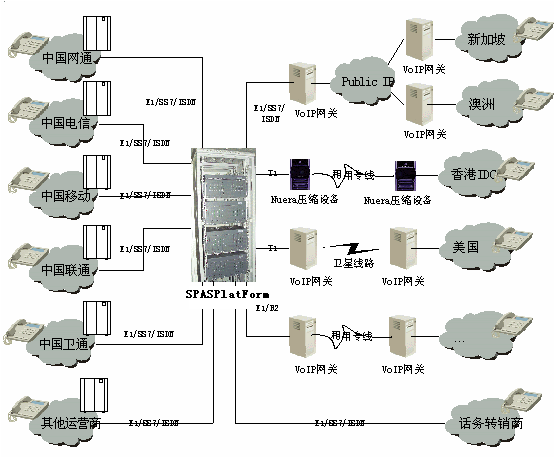 深圳斯普瑞特公司在積累多年電信業(yè)務(wù)應(yīng)用產(chǎn)品開發(fā)的基礎(chǔ)上,根據(jù)新興運(yùn)營商的特點(diǎn)專門構(gòu)造了一個(gè)電信運(yùn)營綜合業(yè)務(wù)平臺(SPASPlatForm平臺)。該業(yè)務(wù)平臺采用世界上最先進(jìn)的開放式的設(shè)計(jì)思路,既可配合各類型的板卡和傳統(tǒng)交換使用,又可配合先進(jìn)的開放式可編程交換平臺使用,還可適應(yīng)下一代網(wǎng)絡(luò)(如:軟交換)。該業(yè)務(wù)平臺軟件采用模塊化設(shè)計(jì),可根據(jù)用戶的需要在同一平臺上實(shí)現(xiàn)多種業(yè)務(wù),包括:話務(wù)轉(zhuǎn)售;預(yù)付費(fèi)電話卡;后付費(fèi)電話;電話呼叫跟隨轉(zhuǎn)移;會議電話等,還可根據(jù)需要生成其他新的業(yè)務(wù)。