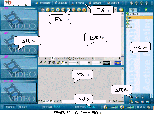 視翰視頻會議系統(tǒng)主界面主要包括以下幾個區(qū)域: