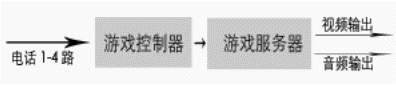由于許多地區(qū),尤其是縣級市沒有信息平臺(tái),而且許多電視臺(tái)愿與電話局直接合作。在這種情況下,電話局和電視臺(tái)合作對有線用戶公布 特服號碼,如123456,參與互動(dòng)游戲的用戶,統(tǒng)一撥打該號碼,電話局提供四條用戶線給互動(dòng)游戲系統(tǒng),同時(shí)對撥打123456的用戶都轉(zhuǎn)到這四條用戶線來,從而接入到互動(dòng)游戲系統(tǒng),由系統(tǒng)給出語音提示引導(dǎo)用戶參與比賽。由于系統(tǒng)最多允許四個(gè)人參與比賽,當(dāng)用戶滿時(shí),撥打游戲熱線的用戶