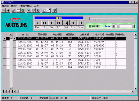 主功能畫面下,點(diǎn)選"錄音播放"按鈕,再點(diǎn)選任何一分機(jī)圖標(biāo),即進(jìn)入如下圖所示畫面: