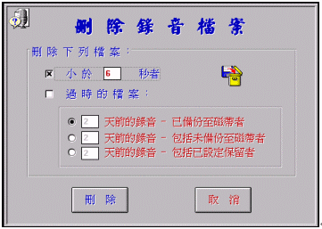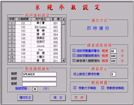 僅限擁有最高操作權(quán)限碼之維護(hù)人員才能使用。當(dāng)系統(tǒng)維護(hù)需要此功能,隨時(shí)可以人工手動(dòng)的方式刪除硬盤內(nèi)的語音檔案。