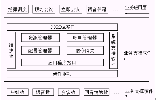 。。其中呼叫管理器通過(guò)CORBA技術(shù)向業(yè)務(wù)層提供2個(gè)軟件接口,資源管理器通過(guò)CORBA向業(yè)務(wù)層提供6個(gè)軟件接口。