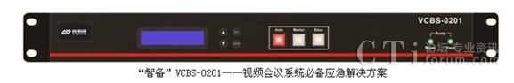 在視頻會議召開的過程中,主會場視頻終端等設(shè)備如果發(fā)生故障時其音視頻信號會發(fā)生中斷,由此將會使整個視頻會議無法繼續(xù)進(jìn)行,傳統(tǒng)的解決辦法是配置第二套視頻終端作為冷備份,當(dāng)主設(shè)備發(fā)生中斷時由系統(tǒng)維護(hù)人員以手工方式切換至備用設(shè)備。北京真視通自主研發(fā)的智備(產(chǎn)品型號:VCBS-0201),解決了主會場主備終端的自動、快速、無縫切換的問題。