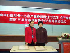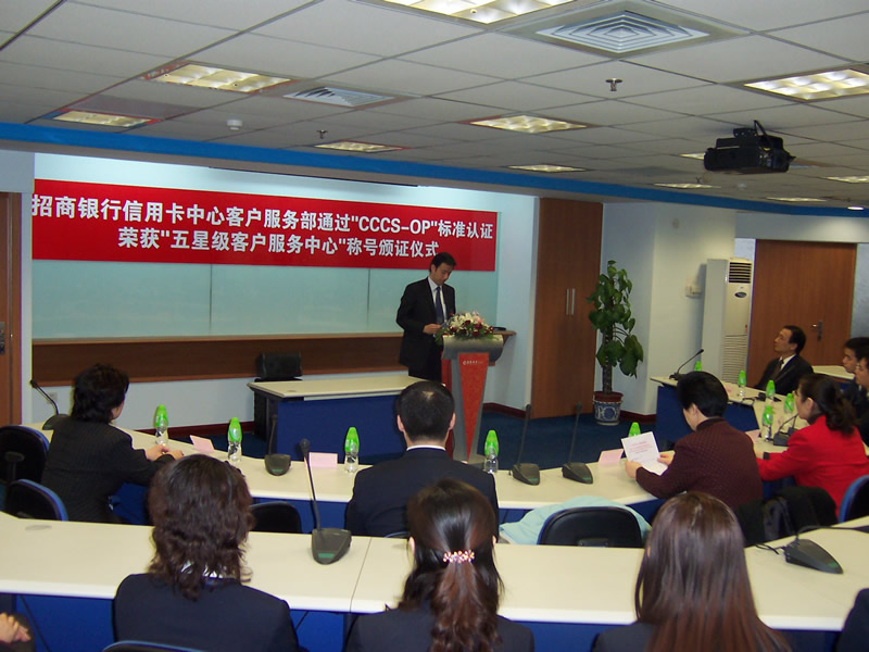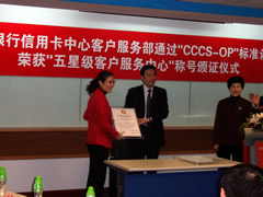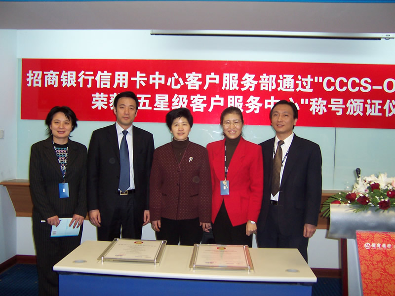 這天的上午10點(diǎn)30分,在招商銀行信用卡中心上?偛颗e行了簡約而隆重的頒證儀式,信用卡中心常務(wù)副總經(jīng)理梁瑤蘭從信息產(chǎn)業(yè)部電子信息中心副主任、中國信息化推進(jìn)聯(lián)盟秘書長劉獻(xiàn)軍手中接過證書,標(biāo)志著國內(nèi)第一家五星級(jí)客戶服務(wù)中心誕生了!