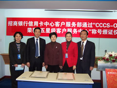 向招商銀行信用卡中心頒發(fā)五星級(jí)認(rèn)證證書 |