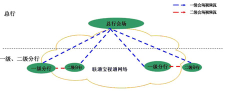 傳輸層:采用網(wǎng)通“寶視通”視頻會議運(yùn)營網(wǎng),該網(wǎng)架構(gòu)在網(wǎng)通IP數(shù)據(jù)骨干網(wǎng)和本地傳輸與接入網(wǎng)之上的業(yè)務(wù)網(wǎng),采用H.264協(xié)議,面向民生行提供可管理的商用視頻會議網(wǎng)。