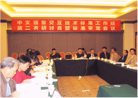 2005年10月24日,中文語音交互技術(shù)標(biāo)準(zhǔn)工作組在北京九華山莊召開了"中文語音交互技術(shù)標(biāo)準(zhǔn)工作組第二次全體會議暨標(biāo)準(zhǔn)審定會議"。本次會議除了進行標(biāo)準(zhǔn)工作組年度工作討論外,還進行了兩項國家語音標(biāo)準(zhǔn)的審議。參加這次會議的代表除工作組全體成員單位外,還邀請了8位業(yè)界著名的語音和標(biāo)準(zhǔn)化專家參加對兩項國家標(biāo)準(zhǔn)的審議。其中在本次會議上待審定的兩項國家標(biāo)準(zhǔn)為安徽中科大訊飛信息科技有限公司提出的《中文語音合成系統(tǒng)通用技術(shù)規(guī)范》(20030188-T-339)和中國科學(xué)院自動化研究所提出的《中文語音識別系統(tǒng)通用技術(shù)規(guī)范》(20030190-T-339)。