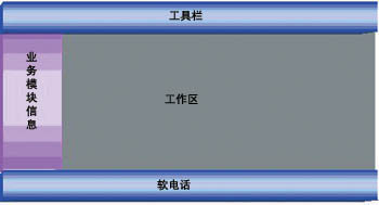 軟電話(huà)提供標(biāo)準(zhǔn)的呼叫控制功能,如座席的登錄、注銷(xiāo)等。業(yè)務(wù)模塊信息根據(jù)該座席的技能設(shè)置顯示該座席能夠使用的座席業(yè)務(wù)模塊,工作區(qū)是座席使用業(yè)務(wù)模塊的區(qū)域,業(yè)務(wù)模塊的調(diào)入可以是系統(tǒng)根據(jù)自動(dòng)服務(wù)傳遞的參數(shù)自動(dòng)彈出,也可以是座席人員手工選擇相應(yīng)的業(yè)務(wù)操作。同時(shí),業(yè)務(wù)模塊通過(guò)標(biāo)準(zhǔn)的接口和軟電話(huà)模塊進(jìn)行通信,取得或者設(shè)置系統(tǒng)的呼叫參數(shù)或操作,包括提取系統(tǒng)主被叫號(hào)碼、用戶(hù)按鍵等。通過(guò)工具欄提供系統(tǒng)的菜單、快捷鍵、快捷按鈕的使用。通過(guò)這種方式,系統(tǒng)可以隨時(shí)增加、修改座席的業(yè)務(wù)模塊,而無(wú)須修改整個(gè)座席端,有利于系統(tǒng)業(yè)務(wù)的分步實(shí)施,大大縮短了系統(tǒng)的整個(gè)建設(shè)周期。
