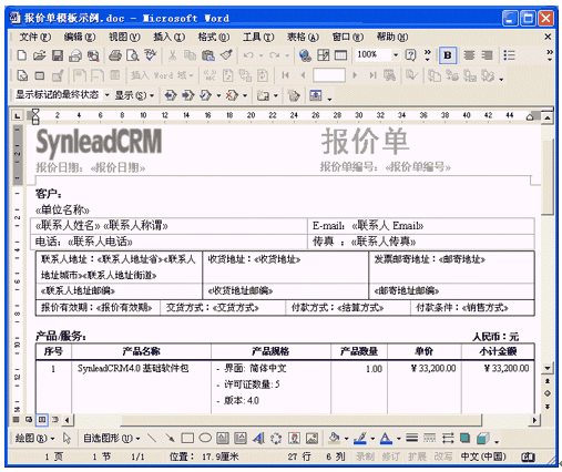 SynleadCRM企業(yè)版4.0很好地滿足了銷售自動化管理、服務自動化管理的上述需求,提供了開放的客戶化Word模板,使得用戶企業(yè)能夠根據(jù)實際情況不斷擴展該應用。客戶化模板直接在Word中編輯,可直觀、方便地插入合并域字段或代碼,只要對Word稍加了解就可勝任模板維護工作。