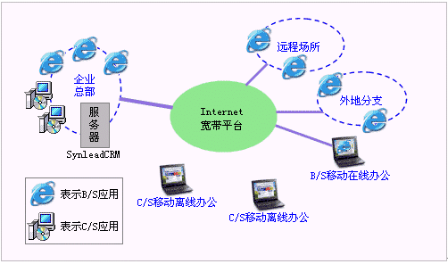 SynleadCRM企業(yè)版4.0可以擴充C/S客戶端。B/S架構在Internet平臺上具有很好的多分支機構擴展性和單邊維護性(即只是維護服務器),而C/S架構往往通過Internet VPN來實現(xiàn)擴展并需要雙邊維護(即同時維護服務器和客戶端)。但C/S當前還保有其不可替代的一些優(yōu)點,與B/S形成優(yōu)勢互補: