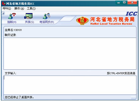 輸入文字信息后按CTRL+ENTER就可發(fā)送消息。輸入的文字可以在 ICC界面上面的聊天記錄對話框中顯示,同時發(fā)送給納稅人。如下圖: