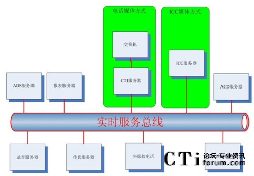 從上圖可以看出,通過實(shí)時服務(wù)總線,電話媒體方式和ICC媒體方式與其他服務(wù)的調(diào)用關(guān)系保持一致即可: