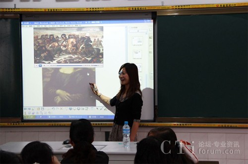 藝術(shù)學(xué)院的老師在講解《蒙娜麗莎》作品構(gòu)圖的同時(shí),點(diǎn)擊PPT的文字鏈接,出現(xiàn)視頻,通過視頻向同學(xué)介紹達(dá)芬奇的生活年代與其它相關(guān)作品。無需切換PPT,無需尋找相關(guān)資料,節(jié)省時(shí)間,也提高了講課的連貫性。