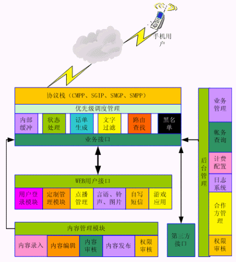 該平臺(tái)可以廣泛地應(yīng)用于SP運(yùn)營(yíng)系統(tǒng)和多種行業(yè)的短信息應(yīng)用。