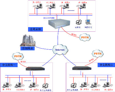 生產(chǎn)總部與分支機(jī)構(gòu)、營(yíng)銷網(wǎng)點(diǎn)實(shí)現(xiàn)統(tǒng)一辦公電話功能(即VOIP組網(wǎng)+辦公電話功能)。