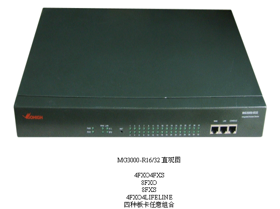 在介紹MG3000-R系列產(chǎn)品的典型應(yīng)用時,產(chǎn)品中心研發(fā)經(jīng)理介紹到:“MG3000-R適用于企業(yè)原有直線電話系統(tǒng)的VOIP改造、原有PBX電話系統(tǒng)的VOIP改造。與軟交換配合后可做中繼使用,也是企業(yè)異地分支機構(gòu)的最佳選擇。再有,在IP呼叫中心中,它還可以構(gòu)建呼叫中心的遠端坐席。此外還有話務(wù)臺等應(yīng)用!