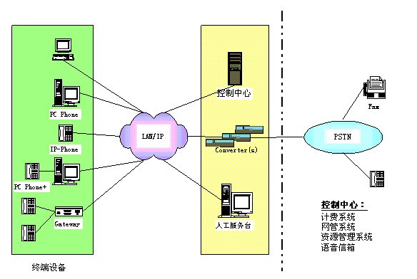 控制中心:包括資源管理系統(tǒng)、計(jì)費(fèi)系統(tǒng)、網(wǎng)管系統(tǒng)、語音信箱。 其中,資源管理系統(tǒng)主要執(zhí)行地址翻譯、權(quán)限控制、路由管理等功能;計(jì)費(fèi)系統(tǒng)主要完成計(jì)費(fèi)及結(jié)算功能;網(wǎng)管系統(tǒng)完成對(duì)網(wǎng)絡(luò)及IP