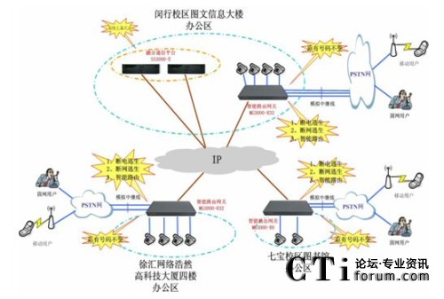 本次項目中上海交通大學(xué)網(wǎng)絡(luò)信息中心擬建設(shè)一套即可提供徐匯、閔行、七寶三個校區(qū)辦公區(qū)域的語音通訊,還可為信息中心日常工作使用的綜合通訊系統(tǒng)。