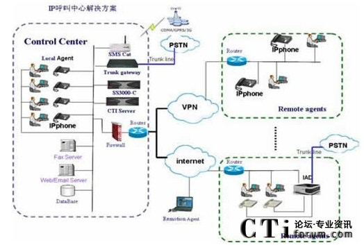 - 服務(wù)中心網(wǎng)絡(luò)化——充分利用IP話機的靈活移動和免費特點,服務(wù)中心的人工坐席可以靈活設(shè)置;