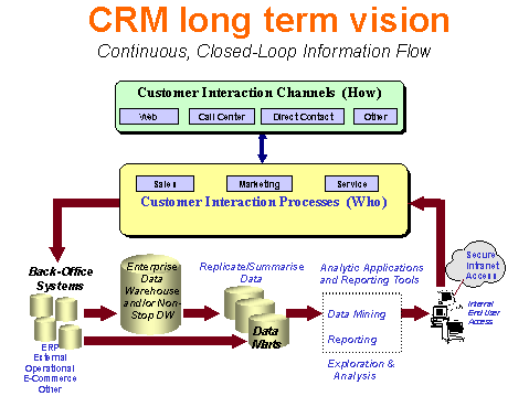 隨著全球Internet時代的到來,電子商務(wù)的飛速發(fā)展以及全球市場競爭的加劇和客戶需求多元化的要求,給傳統(tǒng)的商業(yè)經(jīng)濟(jì)模式帶來了巨大的沖擊。傳統(tǒng)企業(yè)基于4個P(product產(chǎn)品, place渠道, price價格, promotion促銷)的競爭模式已越來越不適應(yīng)社會經(jīng)濟(jì)的發(fā)展,商品品質(zhì)的區(qū)別越來越小,產(chǎn)品的同質(zhì)化傾向越來越強(qiáng)。一味單純地在銷售渠道、價格競爭,促銷手段等方面大量投入,更會提高產(chǎn)品的成本,未必真正能給企業(yè)帶來可觀的利潤。國內(nèi)彩電,VCD傾銷大戰(zhàn)是一個很好的例證。如何由基于產(chǎn)品的經(jīng)營理念向基于客戶關(guān)系的經(jīng)營理念轉(zhuǎn)化,是各大企業(yè)所面臨的主要難題。充分了解市場,充分了解客戶,可以說未來市場的競爭就是服務(wù)手段的競爭,就是發(fā)展客戶關(guān)系的競爭。