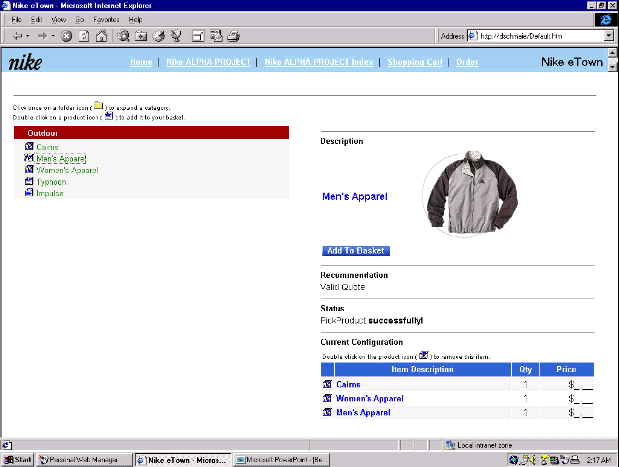 .COM應(yīng)用中一個(gè)十分重要的組件。如圖二所示,其包括可視化的產(chǎn)品目錄,基于Web的報(bào)價(jià)系統(tǒng),產(chǎn)品方案配置及在線的訂單系統(tǒng)。通過它可以為企業(yè)實(shí)現(xiàn)產(chǎn)品目錄個(gè)性化的展示,可以進(jìn)行個(gè)性化的產(chǎn)品報(bào)價(jià),個(gè)性化的報(bào)價(jià)折扣管理,人性化的產(chǎn)品推薦,基于多渠道客戶檔案信息的產(chǎn)品推銷,靈活的產(chǎn)品配置,訂單的多渠道確認(rèn)與修改,