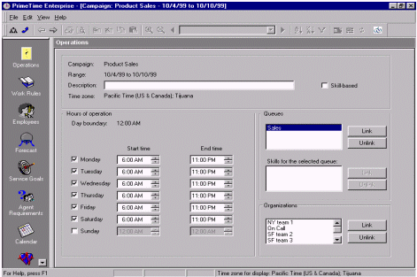 絕大多數(shù)的WFMS可以通過歷史數(shù)據(jù)和人員情況自動(dòng)生成排班表。而且它也只是簡(jiǎn)單的根據(jù)呼叫中心的運(yùn)營(yíng)時(shí)間來排班。舉個(gè)例子,某個(gè)呼叫中心在排班是有兩個(gè)班,一個(gè)工作時(shí)間是早7點(diǎn)到下午3點(diǎn),另一個(gè)是早九點(diǎn)到晚五點(diǎn),這就意味著不僅要安排早、晚休息,還要顧及到午休的時(shí)間。休息的安排要保證能夠在電話的持續(xù)中也能有持續(xù)的人員保證電話量。在這個(gè)自動(dòng)化軟件的之中還有一個(gè)因素要能夠?qū)崿F(xiàn)自動(dòng)化--人的因素。例如:Mary和Jane想同時(shí)去吃午餐,然而自動(dòng)化的排班表并不是這樣的。然而主管根據(jù)當(dāng)時(shí)的話務(wù)量情況和工作狀況以及工作規(guī)范批準(zhǔn)了Mary和Jane共享午餐的要求,而WFMS就要能夠處理這樣很有可能發(fā)生,而且是合理的情況。排班表的更改應(yīng)該就是簡(jiǎn)單的拖拽圖標(biāo)就應(yīng)該能夠?qū)崿F(xiàn)的功能,并且能夠在這種更改會(huì)對(duì)預(yù)測(cè)的話務(wù)量差生不好影響時(shí),拒絕這種拖拽行為。