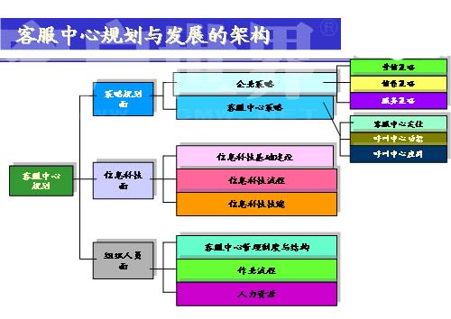 一個(gè)是從整個(gè)規(guī)范層面,一個(gè)是信息層面,一個(gè)是人員組織層面。其中客服中心有企業(yè)的策劃,客服中心的策劃。有營(yíng)銷的策略和銷售的策略,客戶中心的定位是什么樣的,功能是什么樣的,我們通常的定位是希望更高一點(diǎn),不希望它只是在一個(gè)部門里面付出的,他是隸屬于公司總部的,是可以在公司一把手匯報(bào)的等等。從技術(shù)科技,還有信息科技方面、流程方面、技術(shù)方面、人員組織方面、呼叫中心管理、制度、作業(yè)流程、人力資源等等。