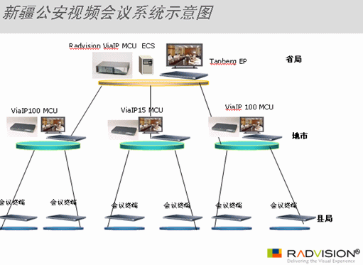 針對新疆公安廳的地理位置、網(wǎng)絡(luò)條件及應(yīng)用需求,RADVISION為其度身訂造了一整套的視頻會議解決方案。