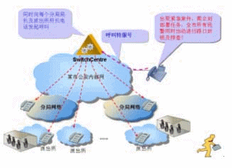 在公安系統(tǒng)中,有時(shí)候出現(xiàn)緊急案件,需立刻部署任務(wù),例如要求全市所有民警同時(shí)出動(dòng)進(jìn)行路口封鎖及排查!如果一個(gè)一個(gè)打電話通知將會(huì)很麻煩,如果有電話廣播功能將是很方便的,可以同時(shí)接通很多電話,將命令廣播下去。華為3Com公司V2oIP系統(tǒng)在強(qiáng)大的GK支持下,只要事先定義了特服號(hào)對(duì)應(yīng)的電話號(hào)碼群組,撥通特服號(hào)就能實(shí)現(xiàn)電話廣播。