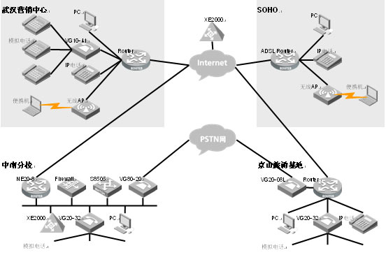 要求實(shí)現(xiàn)IP語音網(wǎng)絡(luò)向廣域網(wǎng)的擴(kuò)展,實(shí)現(xiàn)IP語音無處不在,內(nèi)部電話完全免費(fèi)。并保證廣域網(wǎng)的安全訪問。