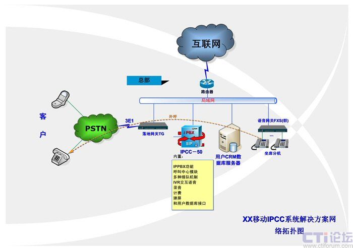 隨著社會的進步和發(fā)展,各企業(yè)和公司越來越重視將現(xiàn)代科技和營銷相結(jié)合,華東某省移動公司,為了快速高效地拓展自己的業(yè)務(wù),決定借助網(wǎng)絡(luò)和通訊的發(fā)展建立新的營銷平臺,通過嚴格的考察和篩選,選擇攜手Polylink集團打造新型的IP呼叫中心平臺。 4.方案設(shè)計