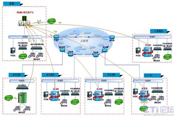 - 在各分公司使用Polylink的iPBX產(chǎn)品進行組網(wǎng)。