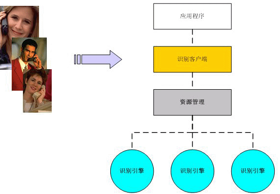 一個語音識別系統(tǒng),主要包含有語音識別的客戶端模塊、資源管理模塊、識別引擎以及與應(yīng)用相對應(yīng)的應(yīng)用程序。