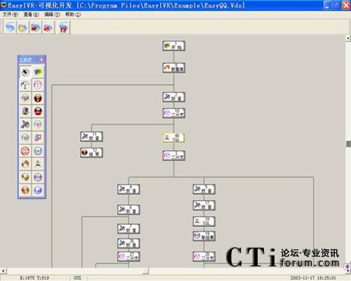 兩個(gè)集成環(huán)境,EhangcomIVR Studio負(fù)責(zé)自動(dòng)語(yǔ)音流程的編輯和調(diào)試,EhangcomIVR Admin負(fù)責(zé)對(duì)語(yǔ)音卡硬件的操作和按照EhangcomIVR Studio生成的具體語(yǔ)音流程的實(shí)現(xiàn)。EhangcomIVR綜合實(shí)現(xiàn)了IVR(Interactive Voice Response交互式語(yǔ)音應(yīng)答)、IFR(Interactive Fax Response 交互式傳真應(yīng)答)和自動(dòng)外撥服務(wù)等多種功能。