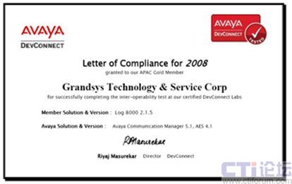 2008年7月 —Grandsys(宏盛高新技術(shù)有限公司)宣布其自創(chuàng)品牌[Grandsys LOG8000 錄音與質(zhì)檢解決方案]正式通過AVAYA DevConnect 的認(rèn)證。Grandsys正是全球?yàn)閿?shù)不多的已經(jīng)通過該項(xiàng)認(rèn)證的AVAYA 合作伙伴之一,包含知名廠家Nice及Verint等,這代表Grandsys的技術(shù)已達(dá)到國(guó)際知名廠家的水平, 國(guó)內(nèi)客戶也因此有機(jī)會(huì)享受到最優(yōu)質(zhì)的產(chǎn)品及服務(wù)。