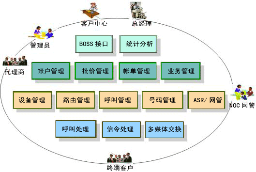 | 呼叫處理 | 設(shè)計原則: 處理接受終端用戶的呼叫請求。 代理向policy請求呼叫認(rèn)證系統(tǒng) 中每一個呼叫,負(fù)責(zé)上報給policy,并接受policy的指示。 功能: 設(shè)備管理:包括:設(shè)備信息管理、設(shè)備號碼管理、用戶的路由策略決定,統(tǒng)計分析、綜合查詢等等。 路由管理:為管理者全方位地管理系統(tǒng)擁有的路由資源,并對這些資源進行開發(fā)提供決策支持。如為不同的客戶不同的要求,提供最適合的路由組合。 呼叫管理:監(jiān)控系統(tǒng)現(xiàn)在正在進行的通話,讓管理者實時了解系統(tǒng)當(dāng)前的業(yè)務(wù)狀況。 ASR統(tǒng)計:讓管理員實時了解系統(tǒng)的近一段時間的各類用戶,各路由的接通率,平均通話時長等。 網(wǎng)管:提供管理員管理每個設(shè)備的信息,并提供遠(yuǎn)程登錄管理到Internet上任何注冊到系統(tǒng)上的設(shè)備。 帳戶管理:管理系統(tǒng)中的每一個帳戶,支持多級的帳戶管理。上一級可以依據(jù)權(quán)限對下一級進行管理。 批價管理:為各種帳戶提供與其相適應(yīng)的價格策略,以最低的成本最有效地激勵客戶。如定制打折,套餐等不同的定價策略. 帳單管理:為每個帳戶提供定時準(zhǔn)確帳單收據(jù)?缮 Word、Excel、txt 等不同格式的帳單明細(xì)報表和統(tǒng)計報表。 業(yè)務(wù)管理:為每個用戶提供各種不同用戶所需要的業(yè)務(wù),并能快速的提供新的業(yè)務(wù)。如呼叫轉(zhuǎn)移,呼叫等待等業(yè)務(wù)。 |