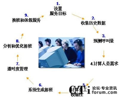 Impact 360 WFM提供一整套的集成排班管理應(yīng)用程序,幫助呼叫中心在三個(gè)關(guān)鍵并且時(shí)常是沖突的要素之間作出優(yōu)化。他們是:客戶(hù)的滿(mǎn)意度、員工的的滿(mǎn)意度與穩(wěn)定性,以及運(yùn)營(yíng)的成本。在排班管理過(guò)程中,WFM采用如下基本流程: