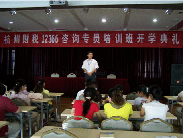 圖為杭州財稅12366咨詢專員培訓班開學典禮上杭州財稅局人事處領(lǐng)導(dǎo)講話