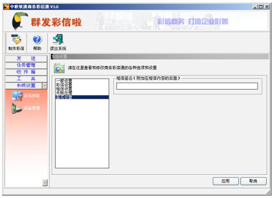 (中聯(lián)軟通商務彩信通系統(tǒng)設置界面)