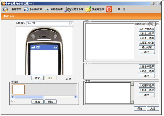 (中聯(lián)軟通商務彩信通彩信編輯界面)