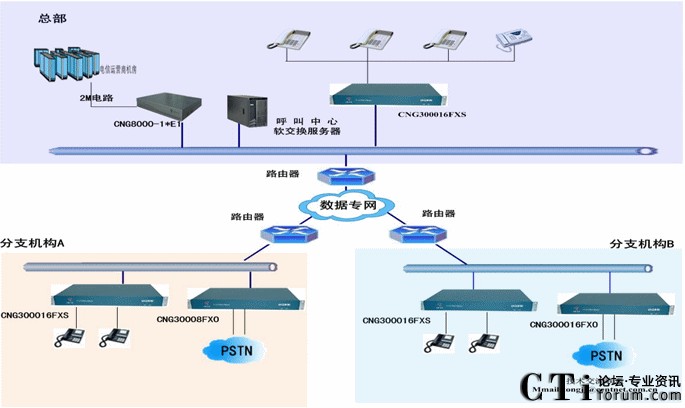 其他呼叫中心IP通信組網(wǎng)方式:
