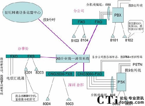 總部現(xiàn)在使用的為傳統(tǒng)PBX設(shè)備,配置為50路外線和200內(nèi)線,分機(jī)為8前綴4位的分機(jī)號(hào)碼,如8001分機(jī)。32個(gè)的辦事處使用電信匯線通或直接的PSTN線路,2個(gè)的區(qū)域營(yíng)銷中心使用匯線通或直接的PSTN線路,2個(gè)分公司使用的小型PBX?偛磕壳吧暾(qǐng)了4條2M的ADSL線路做為一個(gè)集合,沒(méi)有固定的IP地址,各個(gè)分公司也多使用ADSL上網(wǎng)或電信的小區(qū)寬帶上網(wǎng)。