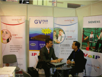 美國訊時捷科技公司作為IP-PBX專業(yè)提供商于2006年5月23-26日參加了最具權威的2006中國國際信息通信展覽會,在上海光大會展中心的B019展位展示了Switchvox IPX與戰(zhàn)略合作伙伴Siemens配套IP終端話機。此次展會,我們還推出了企業(yè)級新一代的IP傳真服務器GV-FAX,此次大會吸引了眾多全國的渠道代表、廠商、集成商和媒體參加,對產(chǎn)品感興趣的來賓絡繹不絕。