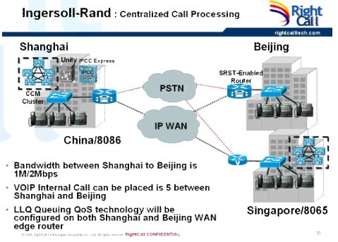 正音科技技術(shù)團隊,在實施切換前期進行了大量的調(diào)研、測試工作,嚴(yán)格按照PDIOO的項目執(zhí)行流程,尤其是在設(shè)計(Design)、實施(Implement)兩個階段中多次與用戶溝通論證,提交了項目切換過程中所需的精確實施配置文檔及應(yīng)急預(yù)案,在不中斷業(yè)務(wù)的情況下,利用周末兩天的時間完成了上海、北京兩地思科IP語音系統(tǒng)的切換。